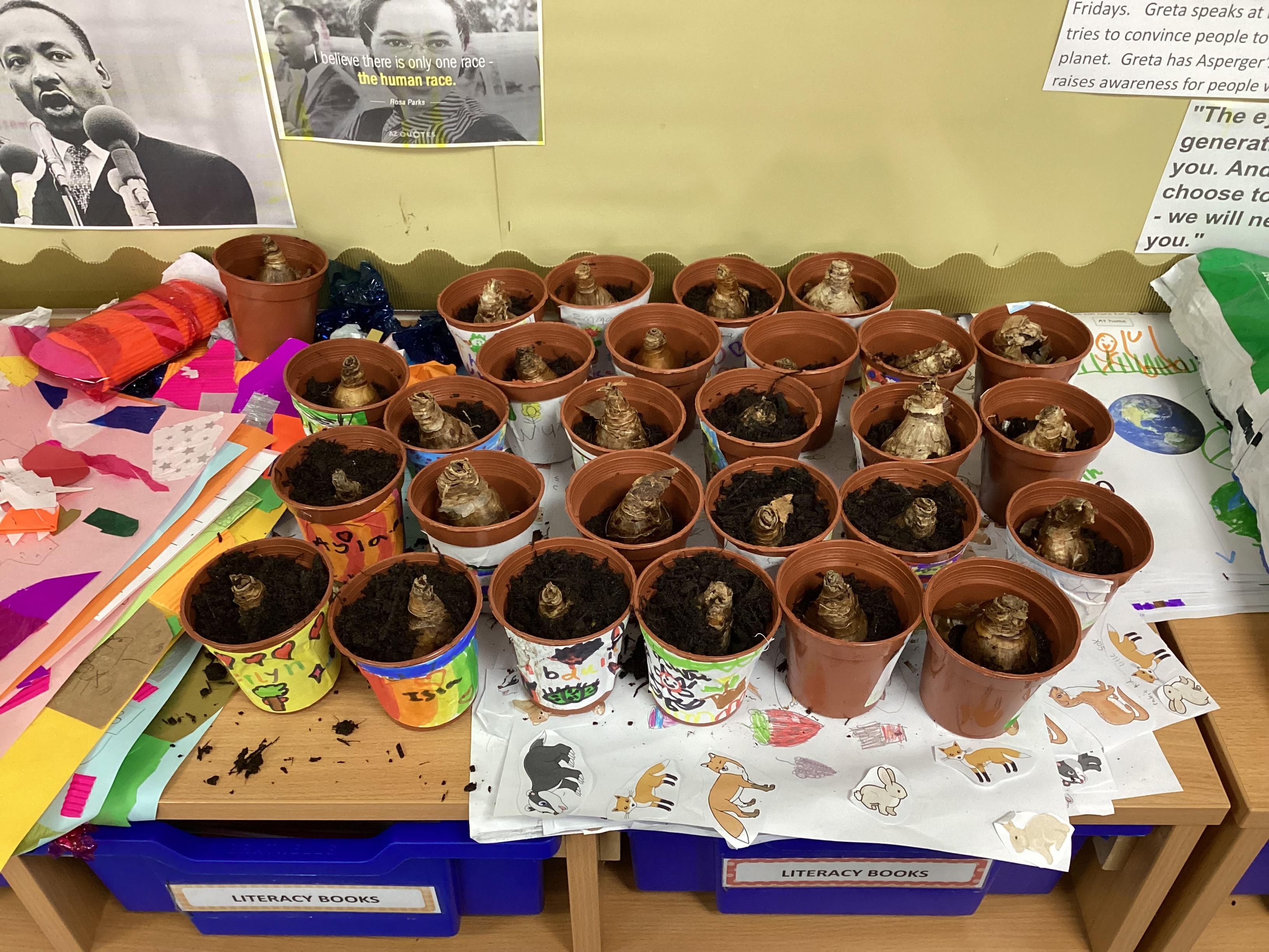 Year 2 have been busy in RE and PSHE lessons learning about how they can care for our wonderful world and all of the things in it. They planted bulbs and seeds and made bird feeders. They also came up with some fantastic ideas about how we can reduce, reuse and recycle to take better care of our world!