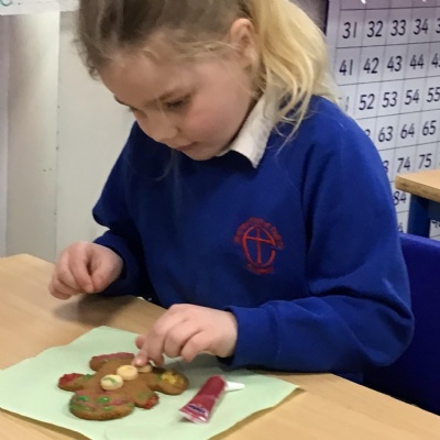 As part of our design and technology curriculum year 2 completed a cook topic! The children were challenge make gingerbread! They started at the design stage thinking about ingredients, exploring ginger and thinking about equipment they would need. They then moved on to making their designs, learning how to measure accurately, follow a recipe, roll dough and cut out from it before baking and decorating. Finally they evaluated their makes against their planned designs especially enjoying the taste testing!!